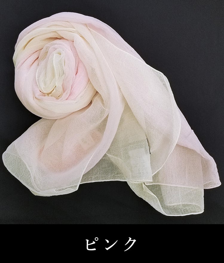 和紙のストールです。北陸福井に長く続く伝統技法で編んだ生地を、江戸時代から続く一点手染めの技で染め仕上げしたものです。同じ柄はほかにありません。